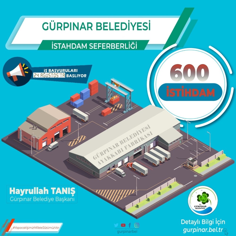 “Gürpınar istihdamla kalkınacak” Birinci etap fabrika ile 600 kişiye istihdam alanı oluşturacaklarını belirten Başkan Tanış, “Belediyemizin girişimleri ve yatırımcı firmanın desteği ile ilk etapta 600 kişiye istihdam alanı oluşturacak fabrikamız için personel alım ilanına çıktık. Biliyoruz ki bölgemizin en büyük problemi işsizlik ve biz bu sorunu çözmek için göreve geldiğimiz ilk günden itibaren durmadan, yorulmadan çalışmalarımızı yürütüyoruz. 600 insanımıza iş olanağı oluşturmak ciddi bir emeğin ürünüdür tabi biz bu oranda sabit kalmayarak istihdamı geliştirmeye ve yeni alanlar oluşturmaya devam edeceğiz. Bu anlamda kentimizi gelişime açıp ve gelecek vizyonunu üreten, gelişen ve refah düzeyini her geçen gün yükselten bir yer haline getirmek istiyoruz. Artık ilçemizin olumsuz unsurlarla değil üretimle, istihdamla, kalkınmayla anılmasını istiyoruz. Bu bağlamda ilçemizin gelişimi adına ortak paydada buluşarak yatırımını kendi memleketine yapan Zeynel Çalı Bey’e teşekkür ederim. Allah’ın izniyle 2. etap çalışmalarımızı da kısa süre içerisinde tamamlayarak toplamda binden fazla insanımıza iş olanağı oluşturacağız.” dedi. Başvuru koşulları Gürpınar Belediyesi web sitesi “gurpinar.bel.tr” adresinden ilan edildi.