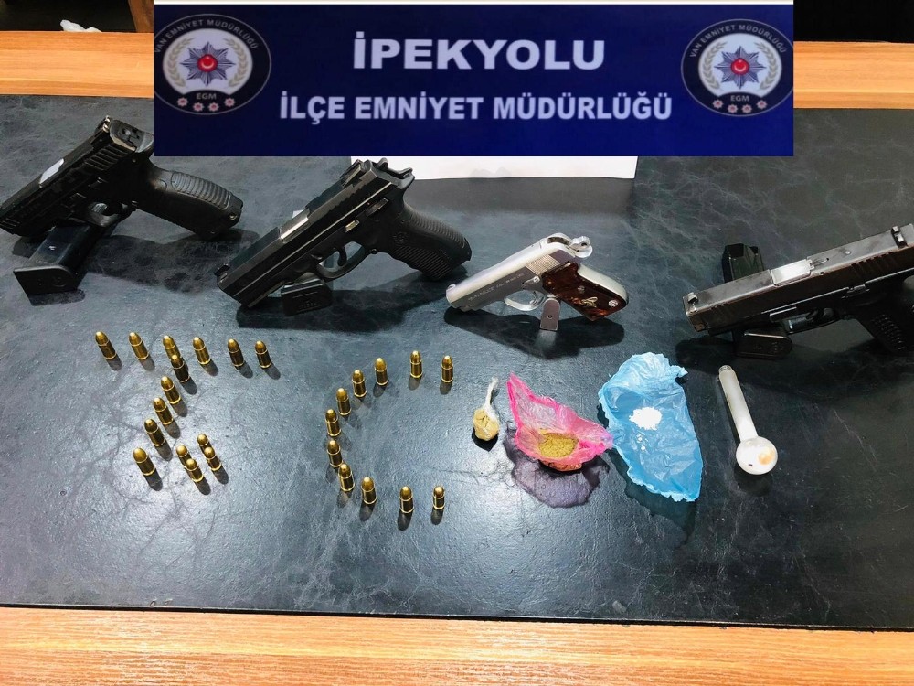 Van’da polis ekiplerince yapılan şok uygulamada 4 ruhsatsız tabanca ve 29 adet fişek ile uyuşturucu madde ele geçirildi.