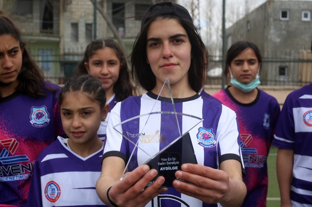 Radyonun Yıldızları organizasyonunda ‘Yılın En İyi Kadın Sanatçısı’ ödülüne layık görülen ünlü şarkıcı Aydilge Sarp, aldığı ödülü 7 yıldır mağlup olmayan Mor Menekşeler Kız Futbol Takımı’na armağan etti.