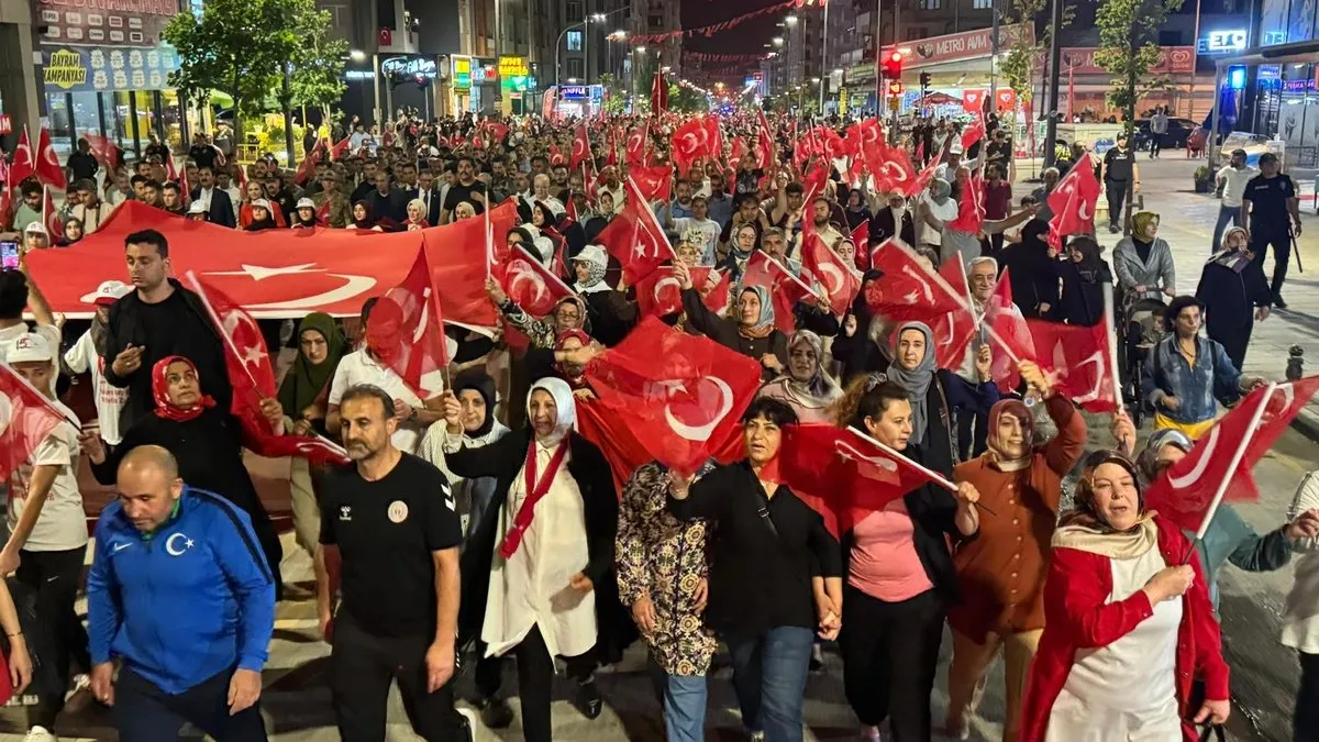 Ellerinde Türk Bayrakları ile yüzlerce kişinin katıldığı program İskele Caddesinden başlayarak, Beşyol Meydanına kadar devam etti. Program Saygı Duruşu ve İstiklal Marşı'nın okunmasıyla başladı. Ardından Kuran-ı Kerim Tilaveti okunurken şehitler için dualar edildi.