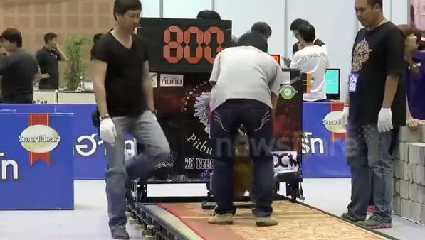 Tayland'da düzenlenen evcil hayvanlar fuarında pitbull gücünü sergiledi.