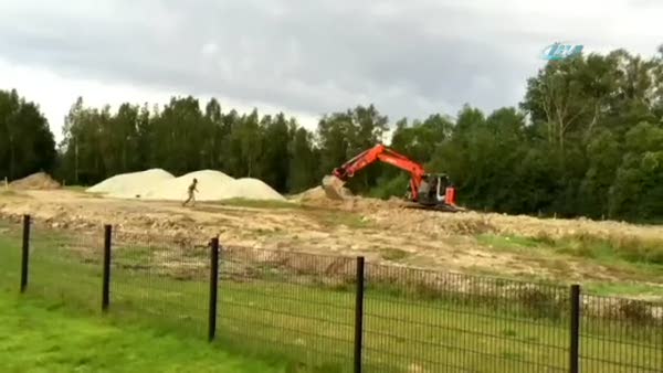 İş makinesi operatörü saldırıya böyle karşı koydu. Finlandiya’da kaydedilen görüntülerde, ekskavatör operatörü kendisine saldıran adamı kullandığı araçla püskürtüyor. Operatöre yaklaşamayan adamsa, iş makinesini taşlamaya başlıyor.
