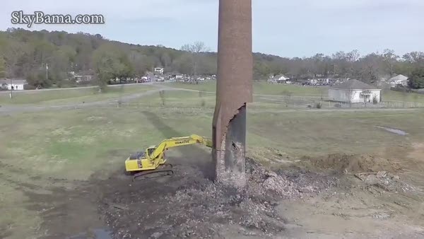 İş makinesini kullanan Tim Phifer isimli adam 115 yıllık eski fabrika bacasını yıkmaya çalışırken talihsiz bir şekilde baca kendi üzerine yıkıldı.