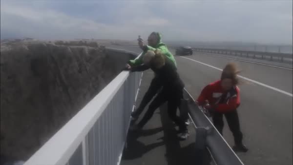Köprü üzerindeki rüzgara karşı zor durdular!