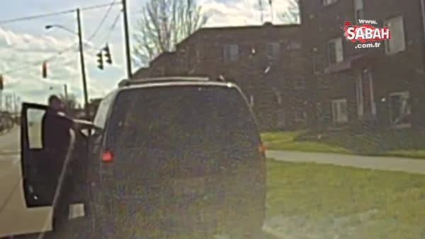Metrelerce sürüklenen polis takibi bırakmadı, kaçak sürücüyü böyle yakaladı. Görüntüler Amerika Birleşik Devletleri’nden. Polisin durdurduğu bir aracın sürücüsü, aniden gaza basınca, memuru metrelerce sürükledi.