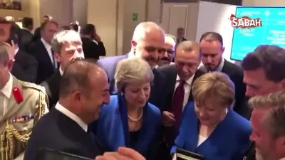 NATO Zirvesi'ne katılmak üzere Belçika'nın başkenti Brüksel'de bulunan Başkan Erdoğan ile Başbakanlar May, Merkel ve Rama, Hırvatistan-İngiltere yarı final müsabakasının son dakikalarını ayaküstü cep telefonundan birlikte seyretti.