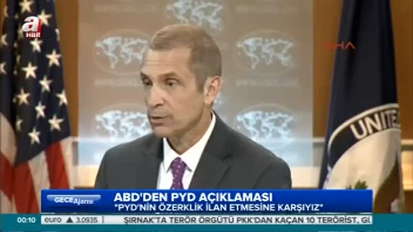 ABD Dışişleri Bakanlığı: PYD'yi Suriye'de bir çeşit yarı özerk bölge kurma çabasına girmemesi gerektiği yönünde daha önce uyardık. Önceliğimiz Suriye içinde müzakere edilmiş siyasi bir geçiş süreci