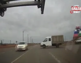 Rusya’da dikkatsiz sürücü aniden yola çıkınca kamyonetle çarpıştı.