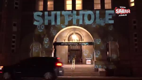 ABD Başkanı Trump'ın Oval Ofis'te mülteciler konulu bir görüşmede sinirlenerek "Bu b*k çukuru ülkelerden niye bu insanları kabul ediyoruz?" sözlerine tepkiler çığ gibi büyüyor. Bir grup aktivist bu sözlere tepki göstermek amacıyla ABD Başkanı Donald Trump'ın Washington'daki otelinin ön cephesine projektörle "B*k çukuru" yazısı yansıttılar. İşte o görüntüler...
