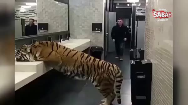 Tuvalette çeşmeden su içen kaplan!