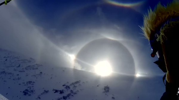 Avusturya Alpleri’nde ‘yalancı güneş' olarak bilinen ve havadaki küçük buz kristalleri üzerine ışığın yansımasıyla oluşan meteorolojik olay fotoğraf makinelerine yansıdı.