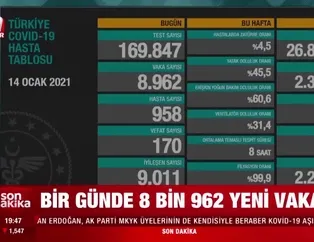 Koronavirüste nisan ayından itibaren düşmeye başlayan hasta sayıları kış aylarının gelmesiyle tekrar yükselişe geçti. Sağlık Bakanı Fahrettin Koca son dakika uyarılarıyla birlikte günlük koronavirüs hasta, vaka sayısı ve vefat sayılarını duyuruyor. Vatandaşların merakla beklediği 14 Ocak corona virüs tablosu Bakan Koca tarafından açıklandı. İşte, son dakika Türkiye'de 14 Ocak koronavirüs hasta, vaka sayısı ve vefat sayıları tablosu...