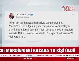 Son dakika haberleri: Gaziantep'in Nizip ilçesinde 15 kişinin hayatını kaybettiği korkunç kazanın ardından bir acı haber de Mardin'den geldi. Mardin'in Derik ilçesinde yoldan geçen TIR, freninin patlaması ile kazaya müdahale eden ekiplerin üzerine daldı. Sağlık Bakanı Fahreyttin Koca, Mardin'deki feci kazada 16 kişinin hayatını kaybettiğini 29 kişinin de yaralandığını duyurdu. İşte son dakika haberinin detayları...
