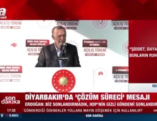 Başkan Recep Tayyip Erdoğan Diyarbakır’da yapımı tamamlanan projelerin açılışında konuştu. Burada önemli açıklamalarda bulunan Başkan Erdoğan, "Diyarbakır Cezaevi'ni boşaltıyor ve kültür merkezi olarak sizlerin hizmetine sunuyoruz. Diyarbakır'ın hafızasındaki bir kötü anıyı ortadan kaldırmış oluyoruz. Şehrimize hayırlı olsun" ifadelerine yer verdi. Çözüm sürecine de değinen Başkan Erdoğan, "Evet çözüm sürecini biz başlattık ama sonlandıran biz olmadık. Bunların gizli gündemleri, art niyetleri sonlandırdı. Hiçbir zaman meşru, demokratik, hukuk düzeninde siyaset yapmayı düşünmediler" dedi. İşte Başkan Erdoğan'ın açıklamalarından satır başları...