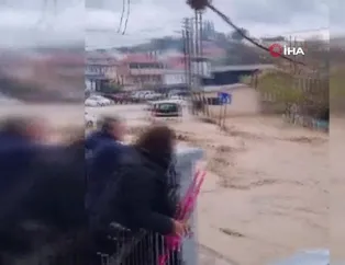 Çanakkale'de dere taştı, bir araç suya gömüldü