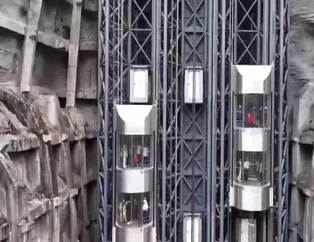 Çin'de turistleri yaklaşık 130 metre yukarıda bir araya getiren asansör, turistlerden büyük ilgi görüyor.