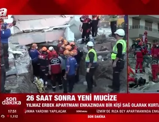 İzmir'de meydana gelen 6.6 şiddetindeki depremin ardından yıkılan binanın altında kalan bir kişi 26 saat sonra kurtarıldı. O anlar A Haber ekranlarına yansıdı.