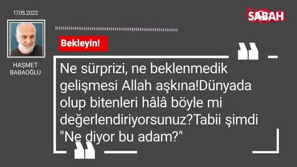 Haşmet Babaoğlu'nun 17.05.2022 tarihli Sabah Gazetesi köşe yazısı...
