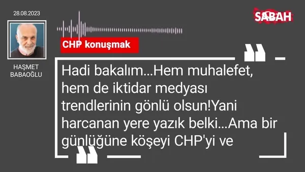Haşmet Babaoğlu'nun 28.08.2023 tarihli Sabah Gazetesi köşe yazısı...