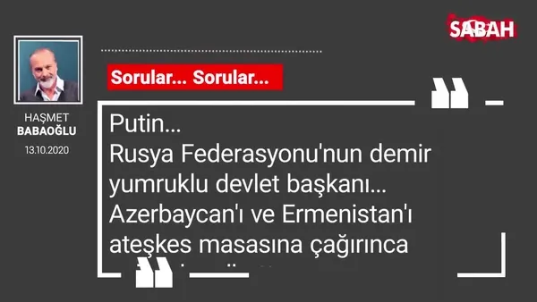 Haşmet Babaoğlu'nun 13.10.2020 tarihli Sabah Gazetesi köşe yazısı...