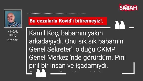 Hıncal Uluç'un 16.02.2021 tarihli Sabah Gazetesi köşe yazısı...