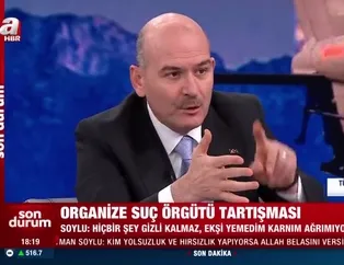 Son dakika haberi: İçişleri Bakanı Süleyman Soylu son günlerde sosyal medyada yayılan suç örgütü elebaşısının iddialarına yönelik açıklamalarda bulundu. Bakan Soylu açıklamasında: "Hiçbir şey gizli kalmayacaktır. Kalmaz. Ekşi yemedim karnım ağrımıyor " ifadelerini kullandı.