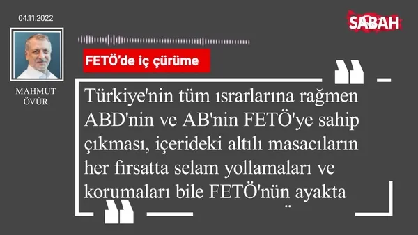 Mahmut Övür'ün 04.11.2022 tarihli Sabah Gazetesi köşe yazısı...