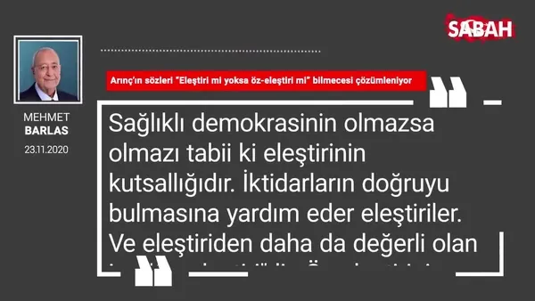 Mehmet Barlas'ın 23.11.2020 tarihli Sabah Gazetesi köşe yazısı...