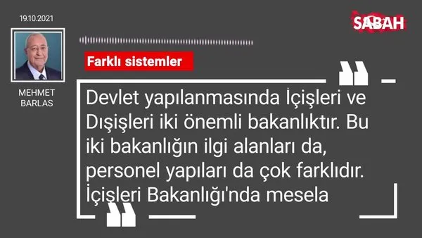Mehmet Barlas'ın 19.10.2021 tarihli Sabah Gazetesi köşe yazısı...