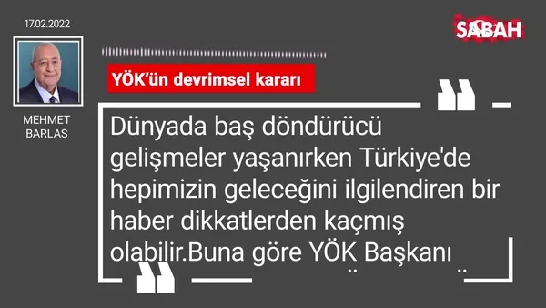 Mehmet Barlas | YÖK'ün devrimsel kararı