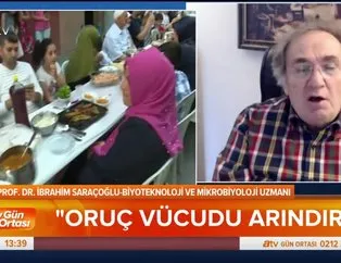 Biyoteknoloji ve Mikrobiyoloji Uzmanı Prof. Dr. ibrahim Saraçoğlu, canlı yayında oruç tutmamın sağlık açısından getirdiği faydaları açıkladı. Prof. Dr. İbrahim Saraçoğlu oruç tutanlar için "Vücutlarını arındırıyorlar. Vücutlarında toksin atıyorlar. Bize zarar verecek olan bu proteinleri imha ediyor ve hücrenin dışına atıyor" dedi.