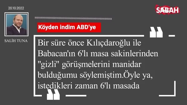 Salih Tuna'nın 20.10.2022 tarihli Sabah Gazetesi köşe yazısı...