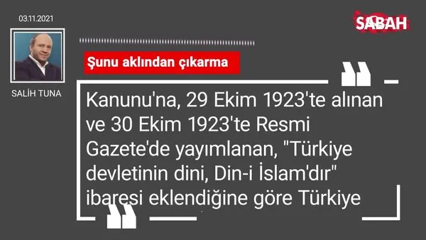 Salih Tuna 03.11.2021 tarihli Sabah Gazetesi köşe yazısı...