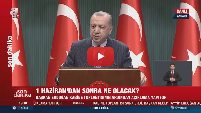 Kabine toplantısı kararlarını Başkan Erdoğan 'Ulusa sesleniş' konuşması ile canlı yayında duyuruyor! Başkan Erdoğan'ın Kontrollü normalleşme kararlarını açıkladığı Ulusa Sesleniş konuşmasını canlı yayınla izlemek için aşağıdaki linke tıklayın...