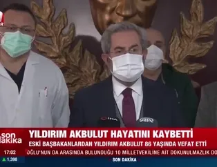 Son dakika haberine göre; Türkiye Cumhuriyeti 20. Dönem Başbakanı Yıldırım Akbulut hayatını kaybetti. Akbulut, bir süredir eşi ile birlikte Ankara Üniversitesi Tıp Fakültesi İbn-i Sina Hastanesi’nde tedavi görüyordu. Akbulut'un eşinin tedavisinin sürdüğü öğrenildi. Öte yandan Başkan Erdoğan, Twitter hesabından Yıldırım Akbulut için taziye mesajı paylaştı. Başkan Erdoğan mesajında "Merhum Yıldırım Bey'e Allah'tan rahmet; ailesine, sevenlerine ve milletimize başsağlığı diliyorum. Mekânı cennet olsun." ifadelerini kullandı.