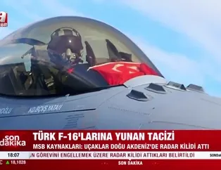 Son dakika haberi: Doğu Akdeniz'de NATO görevi yapan Türk uçaklarına, NATO üyesi Yunan F-16'larınca radar kilidi atılarak tacizde bulunuldu. Milli Savunma Bakanlığı kaynaklarından alınan bilgiye göre, NATO üyesi Yunanistan'a ait savaş uçaklarının önemli bir NATO görevini yerine getiren Türk savaş uçaklarının görevini engellemek üzere bilinçli şekilde radar kilidi attıkları belirtildi.