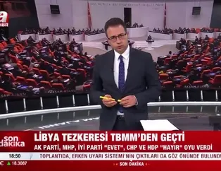 Son dakika haberleri: Libya Tezkeresi, Türkiye Büyük Millet Meclisi'nden geçti. Tezkerenin Meclis'ten geçmesiyle birlikte Libya'ya asker gönderilmesi için verilen iznin süresi 18 ay uzatıldı. Tezkereye AK Parti, MHP ve İYİ Parti "Evet", CHP ve HDP "Hayır" oyu verdi.