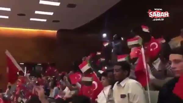 Sudan'daki fahri doktora törenine katılan Cumhurbaşkanı Erdoğan'ı davetliler büyük bir coşkuyla bekledi.