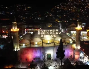 Tarihî Ulu Camisi’ne “Dünyada bir yolcu gibi ol” mahyası asıldı