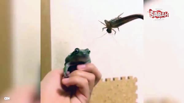 Acemi belgeselci kurbağanın beslenmesini çekmek isterken farklı bir videoya imza atmış oldu.