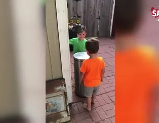 Çöp kutusunu oyuncağa çeviren minikler