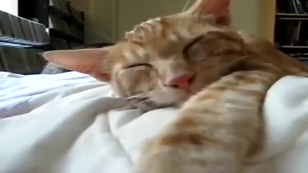 Kedisinin horul horul uyuduğu bu görüntüler izleyenleri kahkahaya boğdu.