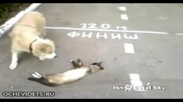 Rusya’da kedinin köpeğe ölü numarası yaparak kaçması, çizgi filmleri aratmadı. Görüntülerde köpek, yolun üzerinde ölü numarası yaparak uzanan kendinin başında uzun süre bekliyor. Kedi bir anda fırsattan faydalanarak kaçmaya başlıyor. Şaşkınlık yaşayan köpek ise kedinin peşine takılarak yakalamaya çalışıyor. Başarılı olamayan köpek, olay yerine geri dönüyor.