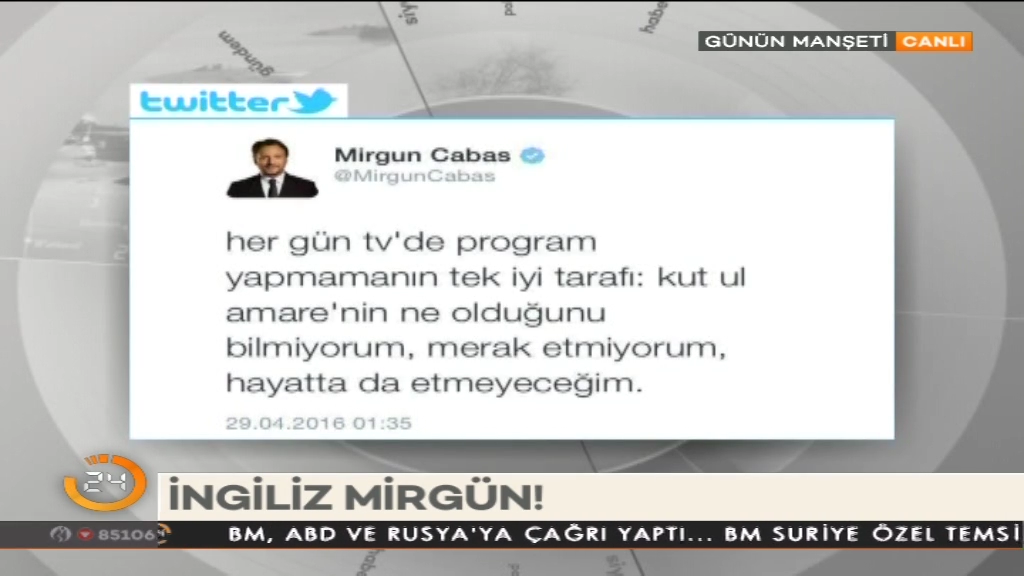 Kanal 24'te yayınlanan 'Günün manşeti' programında Ersoy Dede ve Hikmet Genç, Mirgün Cabas'ın sosyal medyada Kut’ül Amare Zaferi aleyhinde yaptığı yorumları değerlendirdiler. Ersoy Dede Mirgün Cabas'a seslenerek "40 saniyeni ayırırsan sana Kut’ül Amare Zaferi'ni öğretirim" dedi.