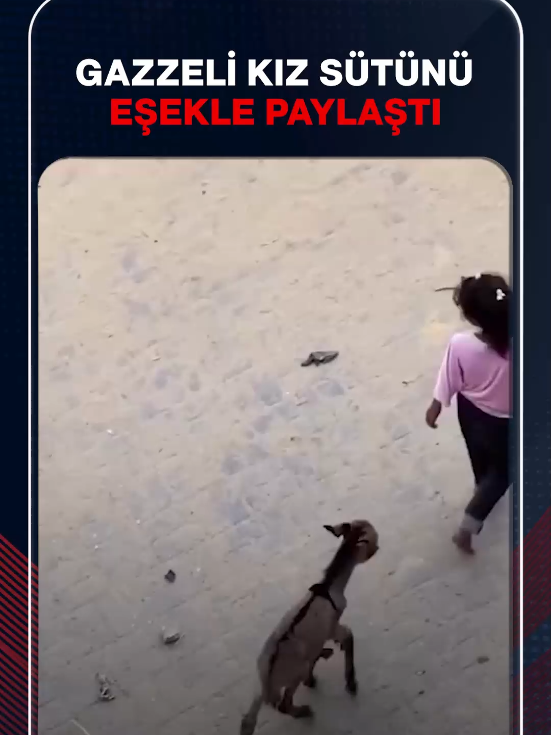 Filistin'de küçük bir kız çocuğu, yokluğa rağmen elindeki sütü yeni doğmuş eşekle paylaştı.