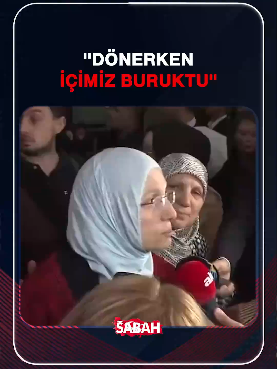“GAZZE’Yİ UNUTMAYALIM” İşgalci İsrail’in alıkoyduğu 15 Türk aktivist İstanbul’a getirildi. Küresel Sumud Filosu’ndaki aktivist Emine Güneş: -Orada bebekler parçalanırken hiçbir şeyin önemi yok. -Dönerken içimiz buruktu. Orada aylarca, yıllarca kalan Filistinliler var, bunları gündem etmemiz gerekiyor. Gazze’yi unutmayalım.