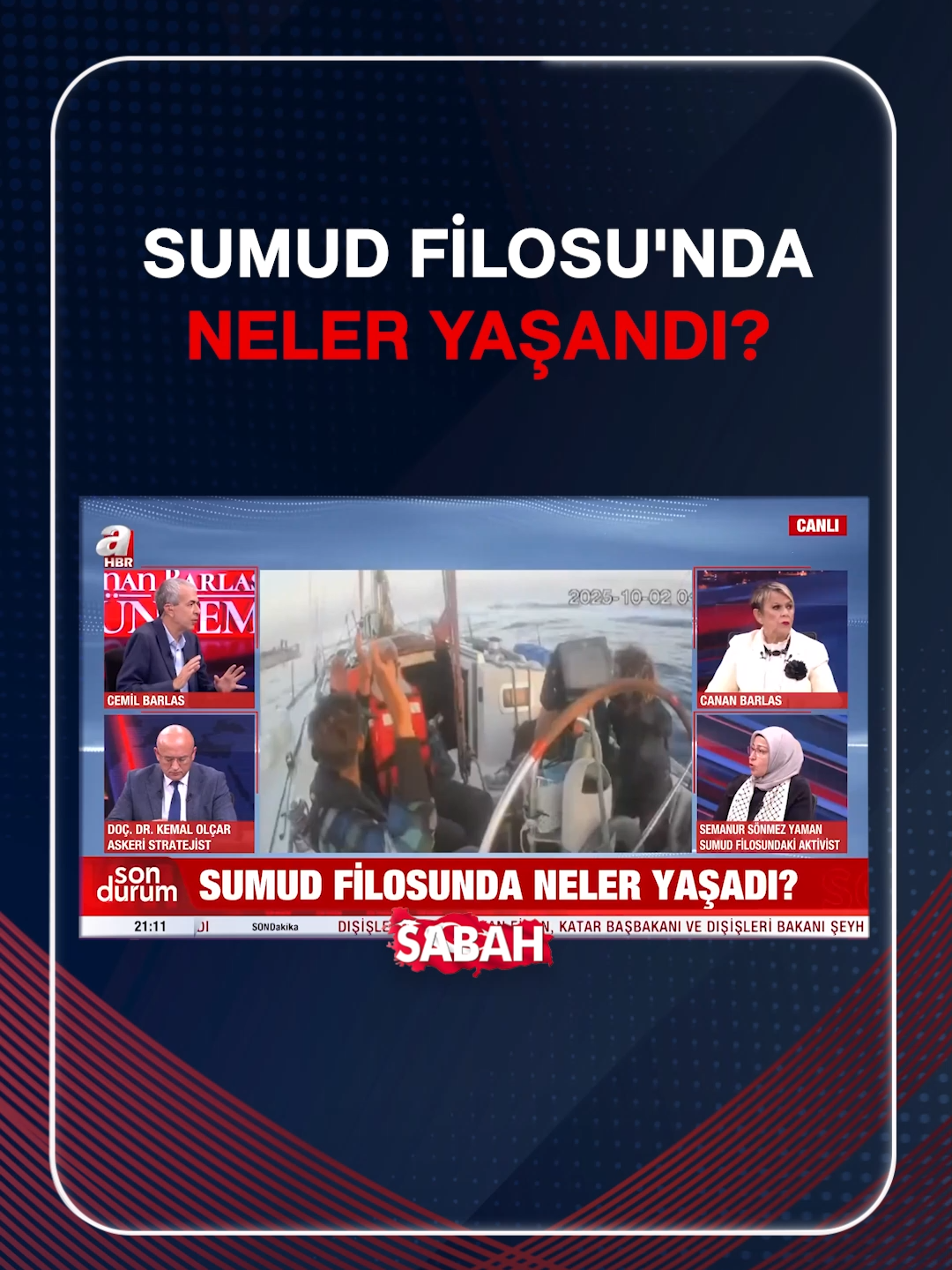 Sumud Filosu’nda neler yaşadı? Sumud Filosu’ndaki aktivist Semanur Sönmez Yaman: Biz uluslararası sulardaydık, İsrail’e çok uzaktaydık. İsrail askerleri gelip teknemize binerek bizi İsrail’e kaçırdı.
