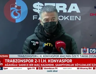 Süper Lig'in 25. haftasında Trabzonspor sahasında ağırladığı Konyaspor'u 2-1 mağlup etti. Trabzonspor Başkanı Ahmet Ağaoğlu galibiyetten sonra önemli açıklamalarda bulundu. Ağaoğlu, "Bu bir ekip işidir. Bunu ne bir hocayla, ne bir başkanla ne de birkaç oyuncu ile sınırlayabilirsiniz. Biz yaklaşık bir buçuk senedir en ince ayrıntısına kadar inceledik. En çok verim alabileceğimiz isimleri aldık. Ben bunu henüz bir başarı olarak görmüyorum. İyi gidiyoruz, planladığımız gibi gidiyoruz. Büyük bir ahenk içerisinde çalışıyoruz. Hiç kimse bu işi ben daha çok biliyorum demiyor." dedi.