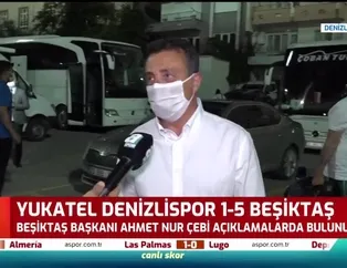Süper Lig'in 28. haftasında Kartal deplasmanda Denizlispor'u farklı geçti ancak Beşiktaş Başkanı Ahmet Nur Çebi oyundan memnun kalmadı. Çebi, maç sonrası verdiği röportajda "İyi bir oyun bekliyordum, beklediğimi alamadım" ifadelerini kullandı.