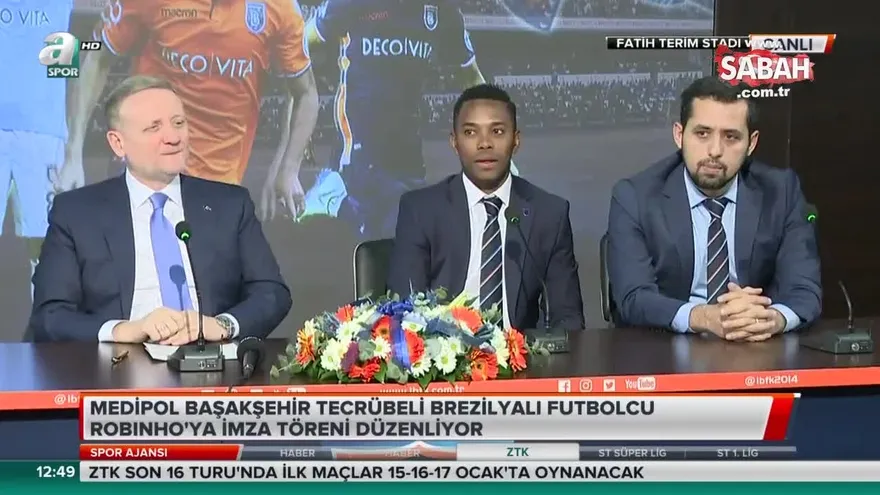 Medipol Başakşehir, Brezilyalı futbolcu Robinho ile 1.5 yıllık sözleşme imzaladı. Düzenlenen imza töreninde konuşan yıldız oyuncu, "Buraya bir hayali gerçekleştirmeye geldim. Gelmemdeki en büyük neden şampiyon olma isteğim" dedi.